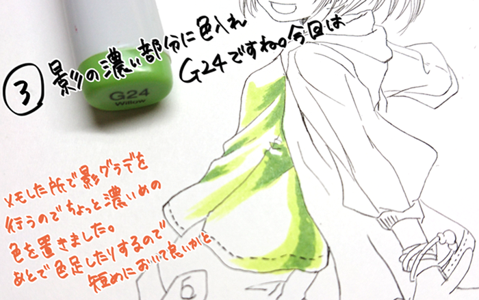 先日コピックの塗り方を聞かれたのでちょっとメイキング的なものを。