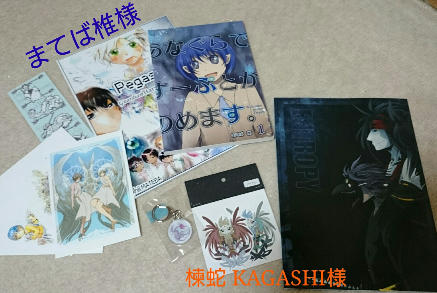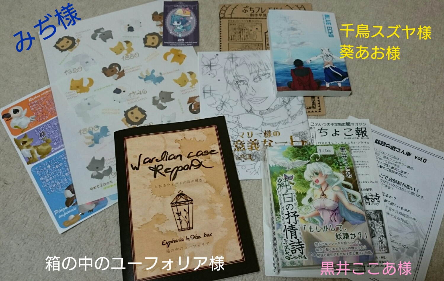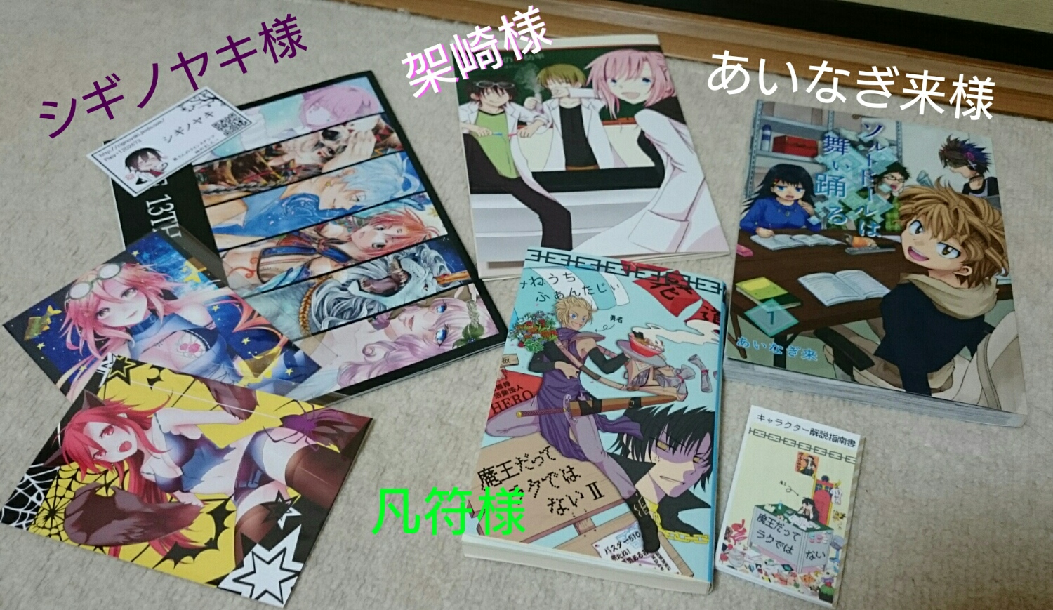 シギ様のところでは参加させていただいた合同誌と新作ポスカを入手! 黒さんのアクキー買ったはずなのに写真に写ってないのはなんでだ??って思ったらお菓子袋の方に入ってましたなんでだ(憤怒