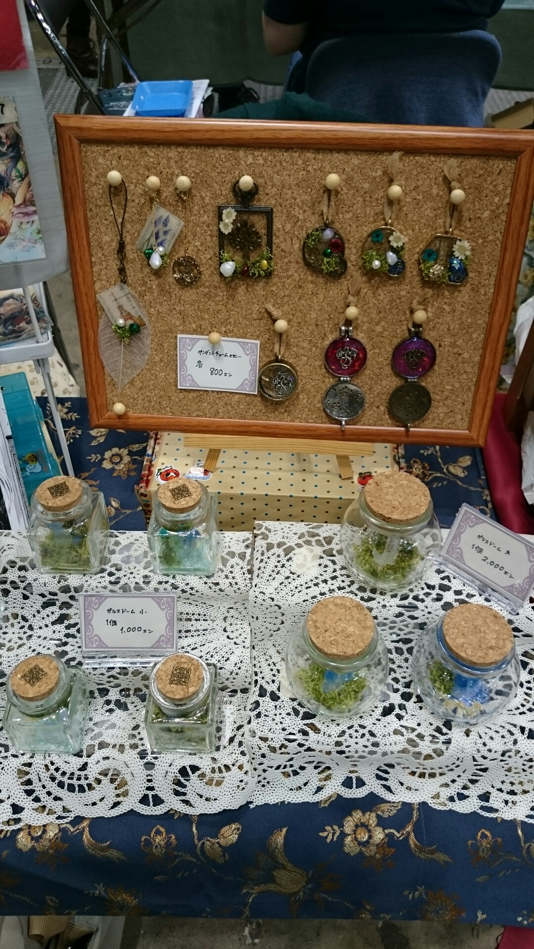 この後前後を交換して、アクセサリー類はテーブルの上に置いたコルク額の上に並べて置く状態に修正されました。もうちょっと人の目に触れるような工夫が必要だなという、家で並べて作ってみた時には気にならなかったけど必要だった部分が分かりました。うーん、何度やっても難しいなぁ