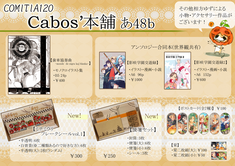 あ!と、そう!! お品書きにポスカ7種と描いてあるのにぼけて6種類しか掲載されてないんですが、ちゃんと7種出しましたよw 詐欺はしてない!ww