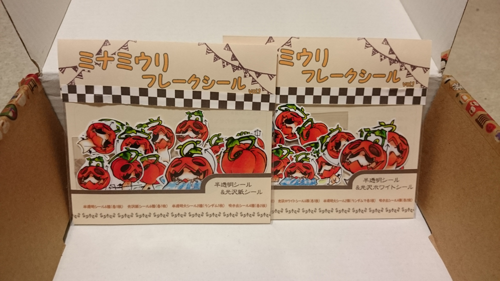 半透明シール×6(6種各1) 白シール×6(6種各1) 半透明大シール×2(6種のうち2枚ランダム) という構成での販売でした。白シールだけ二種類の紙があるのでどっちか好きな方という感じでした!