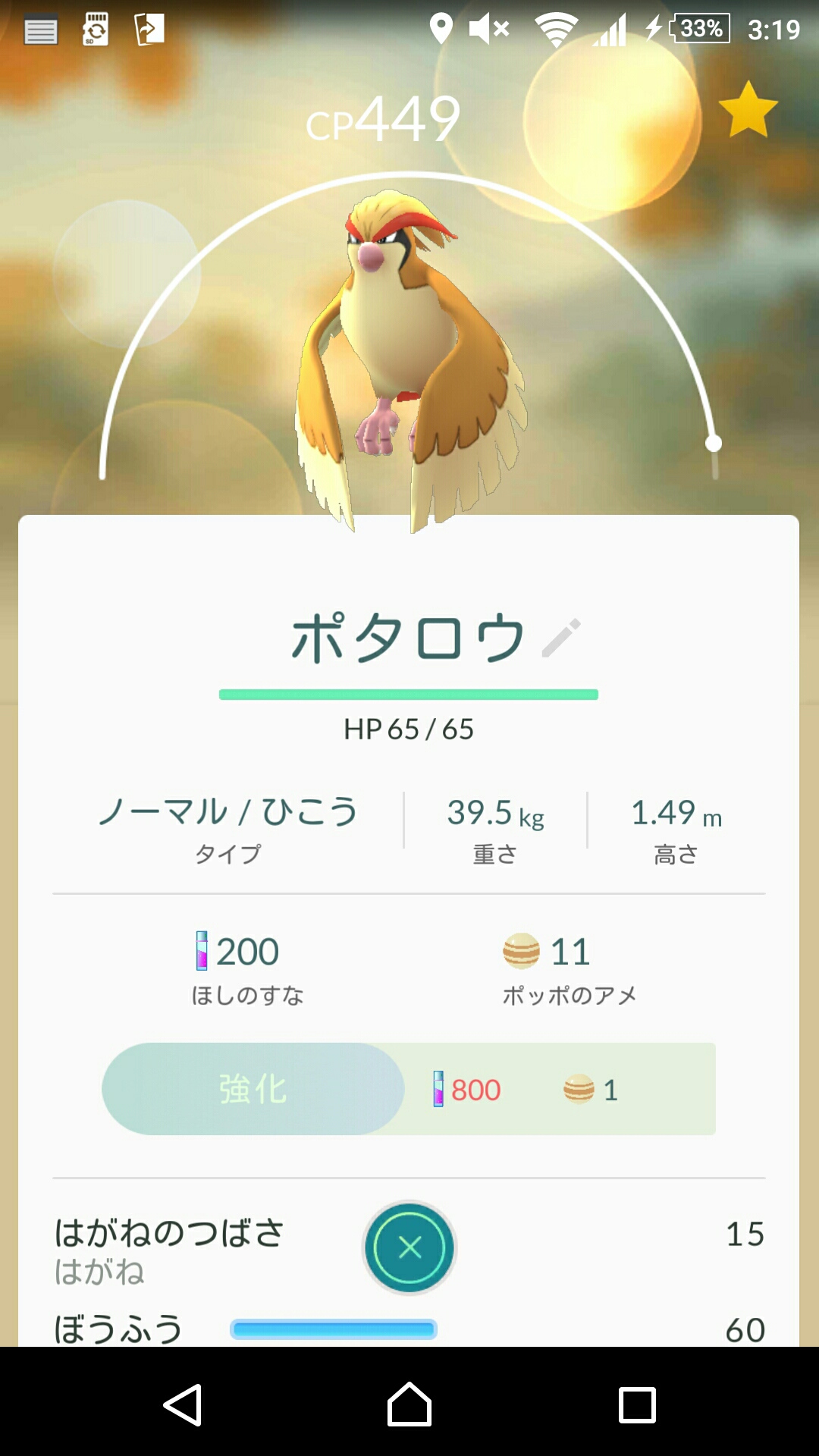 で、実は好きなポケモンピジョットなのでポッポは乱獲できるので乱獲しまくりで速攻ピジョットまで進化させました(笑 ただ元のポッポが大して強くないのであまり強くはないのですが