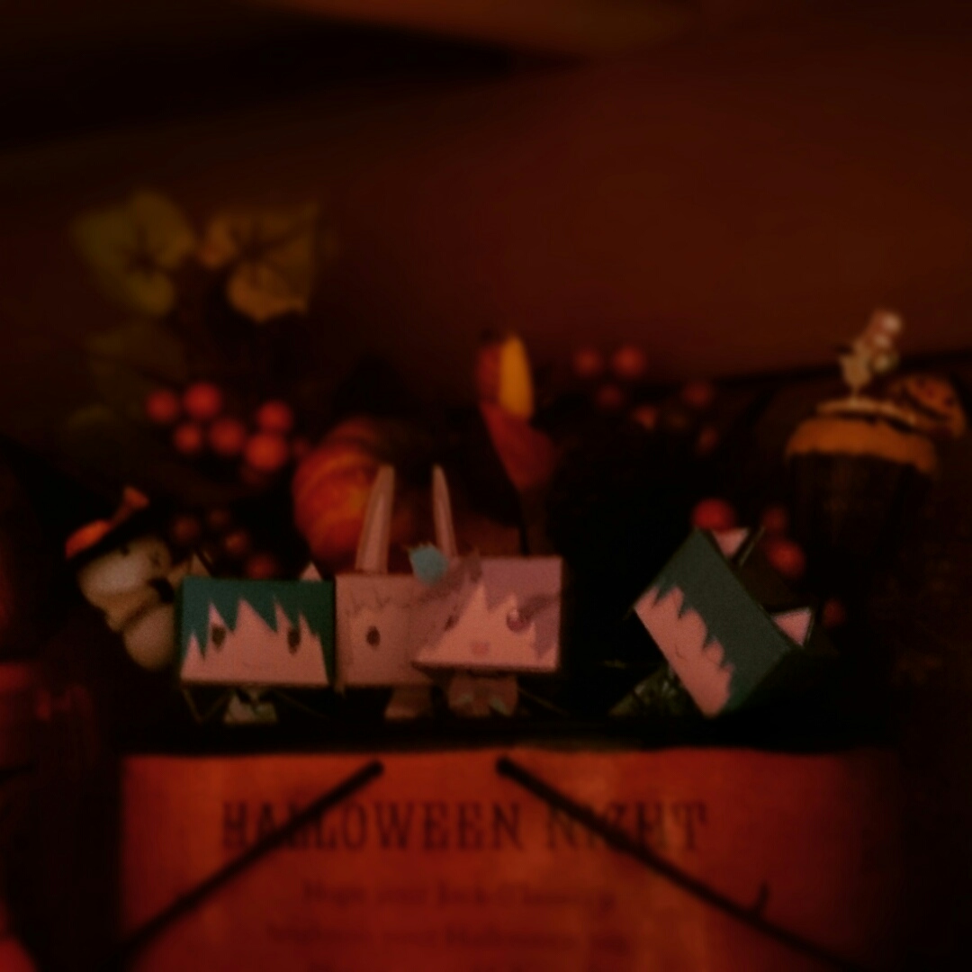 街並みに南瓜めっちゃ並んでるってだけなんですけど、家の形をしているものが3つほどありまして(うち1つは頂き物ですが)それを並べてハロウィントレイン並べてあります。街頭もあって、看板もあるんですがちょっとわかりにくいですねぇ…。