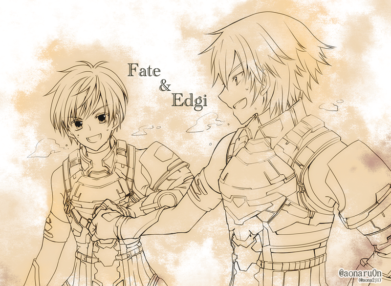 共闘物大好物だからSRFフェイトの必殺技時にエッジ君が出てくるの胸アツ過ぎて…! ずっと描きたかった一枚でしたー! そしてカラーを断念しました(真顔