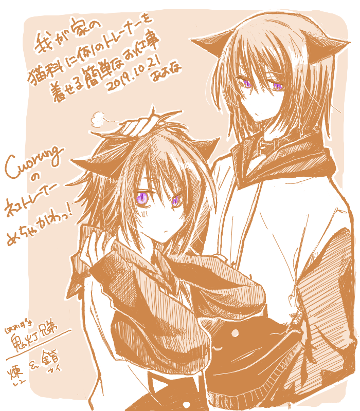 猫トレーナーを着たネコ科二人が描きたくて、今回は鬼灯兄弟を描いてみましたよっと