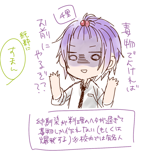 そんな薬など使うことなく毒物を生成する千里の幼馴染の辰巳さん。校内でとても有名な料理音痴デス!